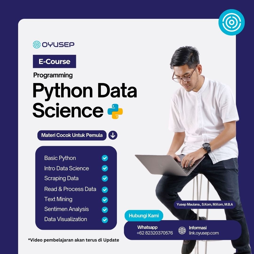 Kamu penasaran dengan dunia Data Science tapi bingung mulai dari mana? Jangan khawatir! E-Course Python Data Science ini dirancang khusus buat pemula! Mulai dari NOL hingga kamu bisa menganalisis data dengan Python dan menghasilkan insight berharga. π₯